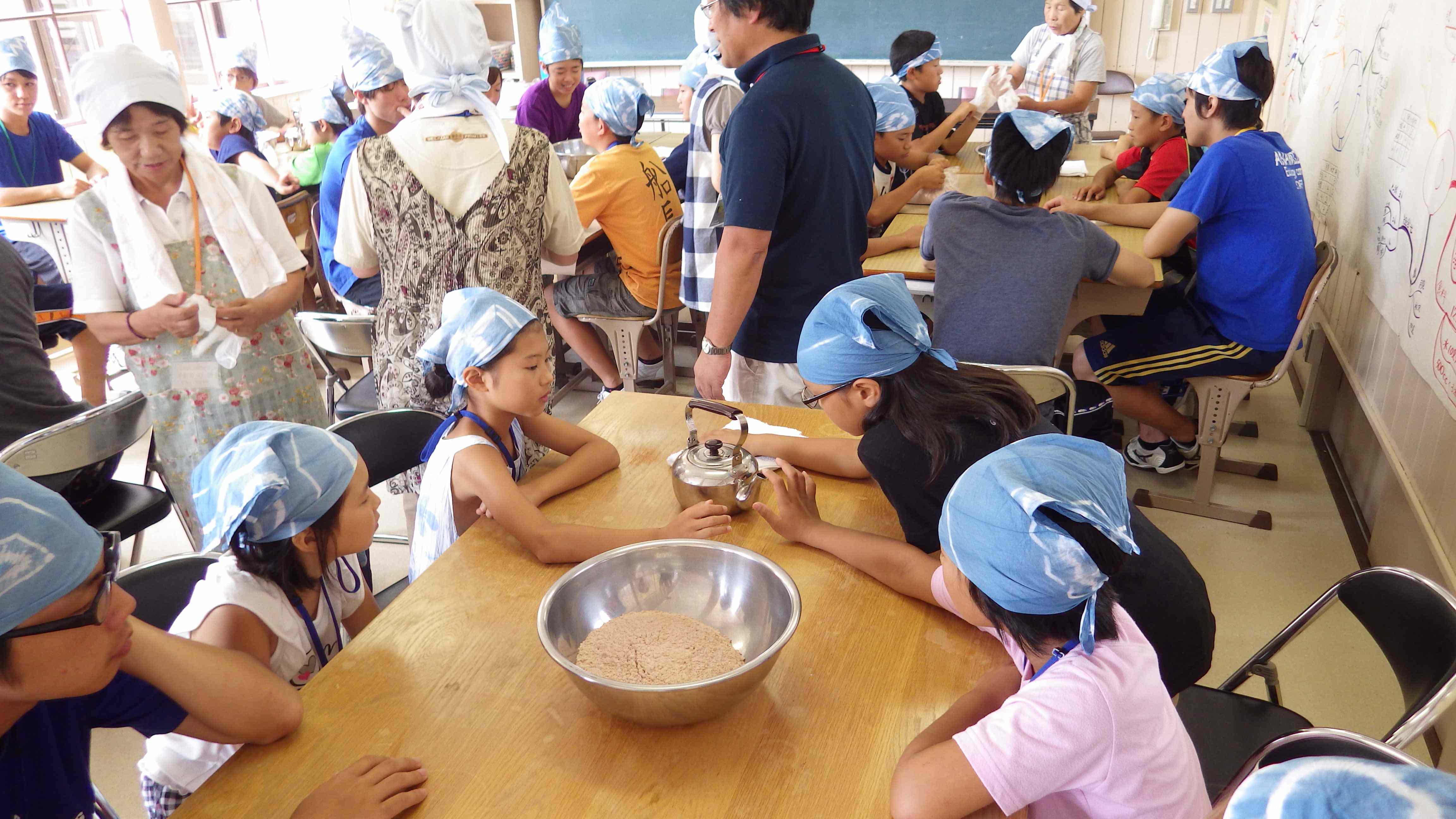 沖波きび加工組合の皆さん、蕎麦クラブの皆さん、草木染め体験の新谷さん、